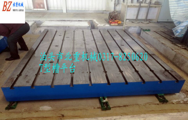 3、開槽的大型鑄鐵T型槽平板:盡量拼接處槽間距對(duì)接后和其它槽間距相同,如槽間距要求300mm,拼接處可以各留150mm,這樣對(duì)接后的裝配平臺(tái)槽間距仍然是300mm。