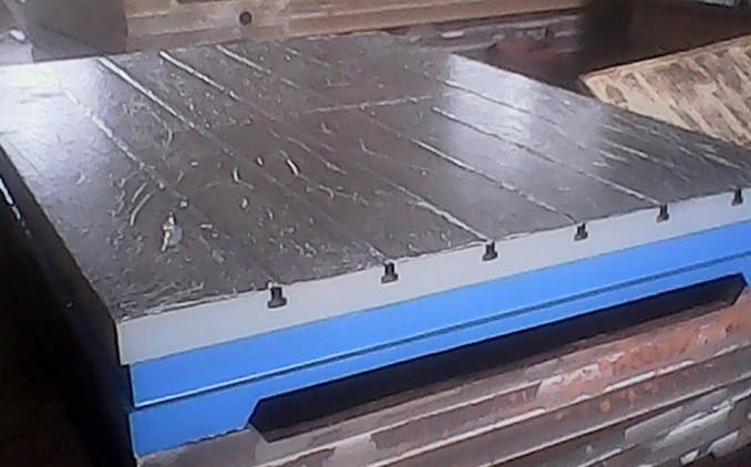我公司生產的鑄鐵T型槽平臺工作面采用的是刮研工藝,用涂色的方法進行檢驗,保證了平面的精度。工作面一般有T型槽,也可以根據要求加工長孔和圓孔,這種T型槽平臺采用的是優(yōu)質純鐵鑄造而成的。我公司生產T型槽平臺廣泛應用在動力機械設備的裝配、調試、焊接、鉚焊,這種產品表面帶有T形槽,可以固定機械設備。另外需要提醒的是,我公司可以根據用戶的要求,定制各種規(guī)格的T型槽平臺。我公司為黑龍江康潔機電設備公司生產的1500×3000T型槽平臺14塊下面是生產現(xiàn)場中圖片場景: