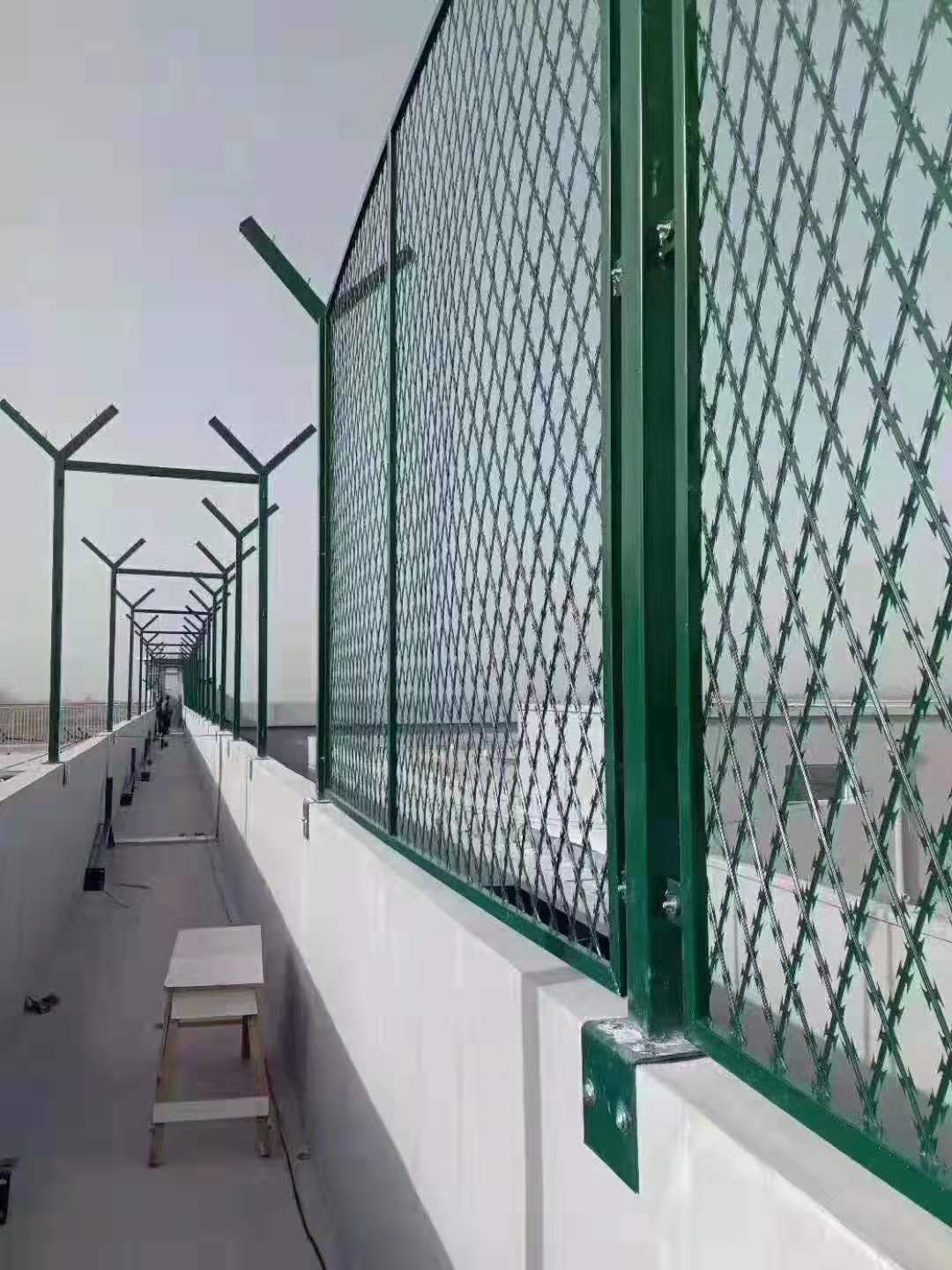 3、Y型立柱隔離網網片菱形孔要求豎向排列,網片必須緊固牢靠、網面平整美觀,每單元網片每側不少于六個連接點。蛇腹式刀刺網每圈刀刺間隔100mm,刀刺每米不少于10圈。刀刺網安裝固定卡扣整體調正,使刀刺網不出現傾斜歪倒,刀刺刺圈分布均勻,每隔20米與拉絲固定,分段連接處需將兩側的刀刺網做連接固定處理,刀刺網固定點需鎖緊不得出現松動現象、刀刺網安裝與隔離網平行,上下左右均成直線狀態,拐角處需做加固處理,Y型立柱隔離網在墻上施工時,每間隔一定距離就要用混凝土澆筑,【一般間距為3米】工程所有部位均采用優質混凝土。