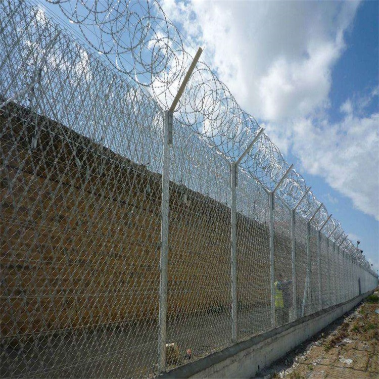 監(jiān)獄刺繩護欄網(wǎng)一般還會被稱為Y型安全隔離防護網(wǎng),是由Y型支架立柱,加強型焊接片刺繩網(wǎng)片,安全防盜銜接件和熱鍍高鋅刀片刺繩組成強度和安全防護性等級很高的護欄網(wǎng)。