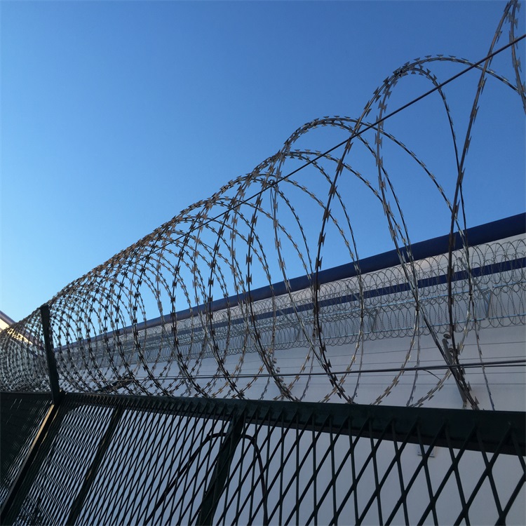 刺絲護欄網在使用上一般的都是與勾花網、框架護欄網進行組合,在護欄網頂部加裝V型架在架起一層的刀片刺繩,這樣護欄網的安全性就大大增強,可以阻止偷盜者的攀爬進入,所以說刀片刺繩是一種防護隔離的好產品。