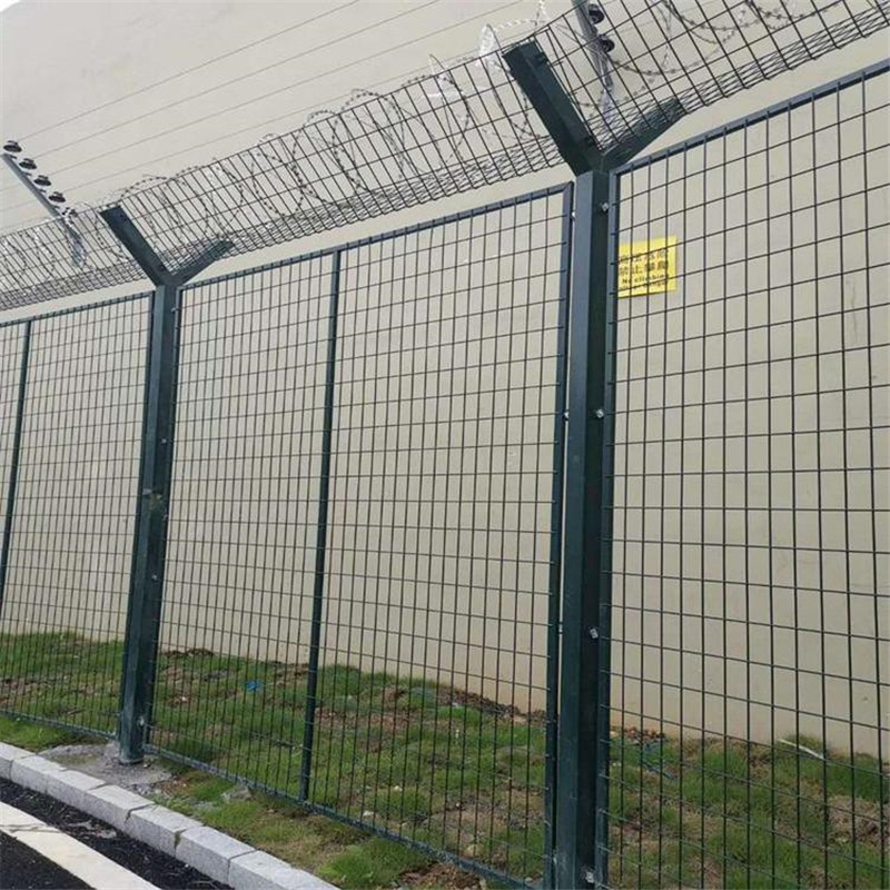 機場圍欄網也稱為“y形安全防御網”,是由V形焊接薄板支柱,安全連接電線和HDG聯合防御構成的高強度安全防護網絡。它被廣泛用于機場和軍事基地。機場圍欄網是機場周圍的特殊安全護欄產品。國內機場護欄網通常用高水平低碳鋼絲或鋁合金線焊接。網格結構簡單,運輸方便,不受地形限制。特別是山區、坡地和多彎區。護欄產品也是耐用和相對便宜的產品,完全可以用于大規模使用。