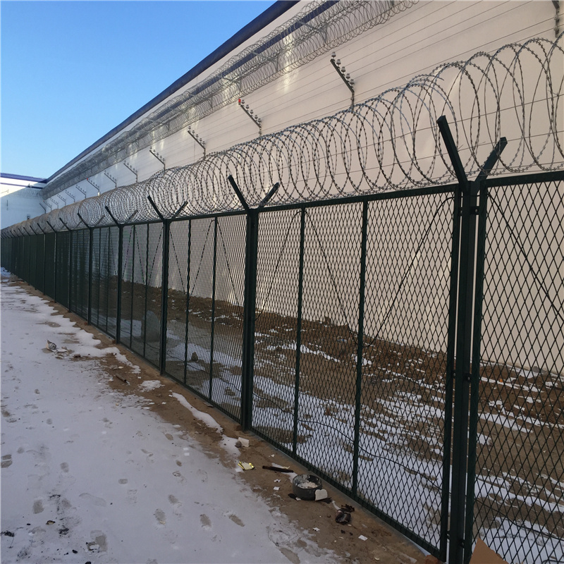 刺絲滾籠隔離網網片:寬2500mm、 高200mm,分上下二層結構,總高4米;上下層之間邊耳連接,根據需要做加強折彎,確 保網片不變形。