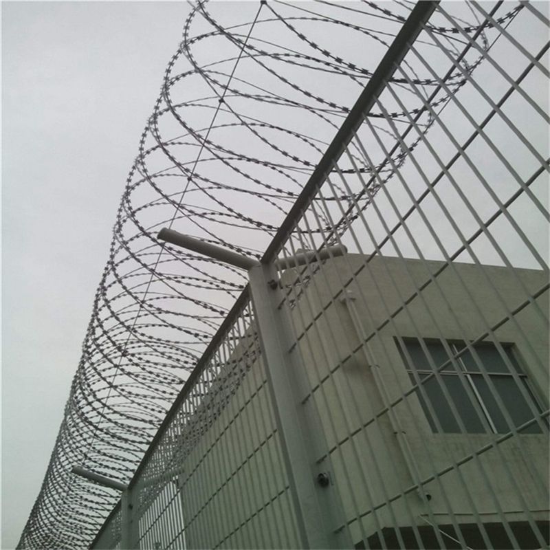 產(chǎn)品特點:監(jiān)獄防護網(wǎng)具不易防腐、不易老化、nai曬、nai候等特點。螺旋型交叉刀片刺網(wǎng)是在兩條刀片刺網(wǎng)之間以不銹鋼片和鍍鋅鋼片強力夾扣,展開后即呈交叉狀,美觀又實用。