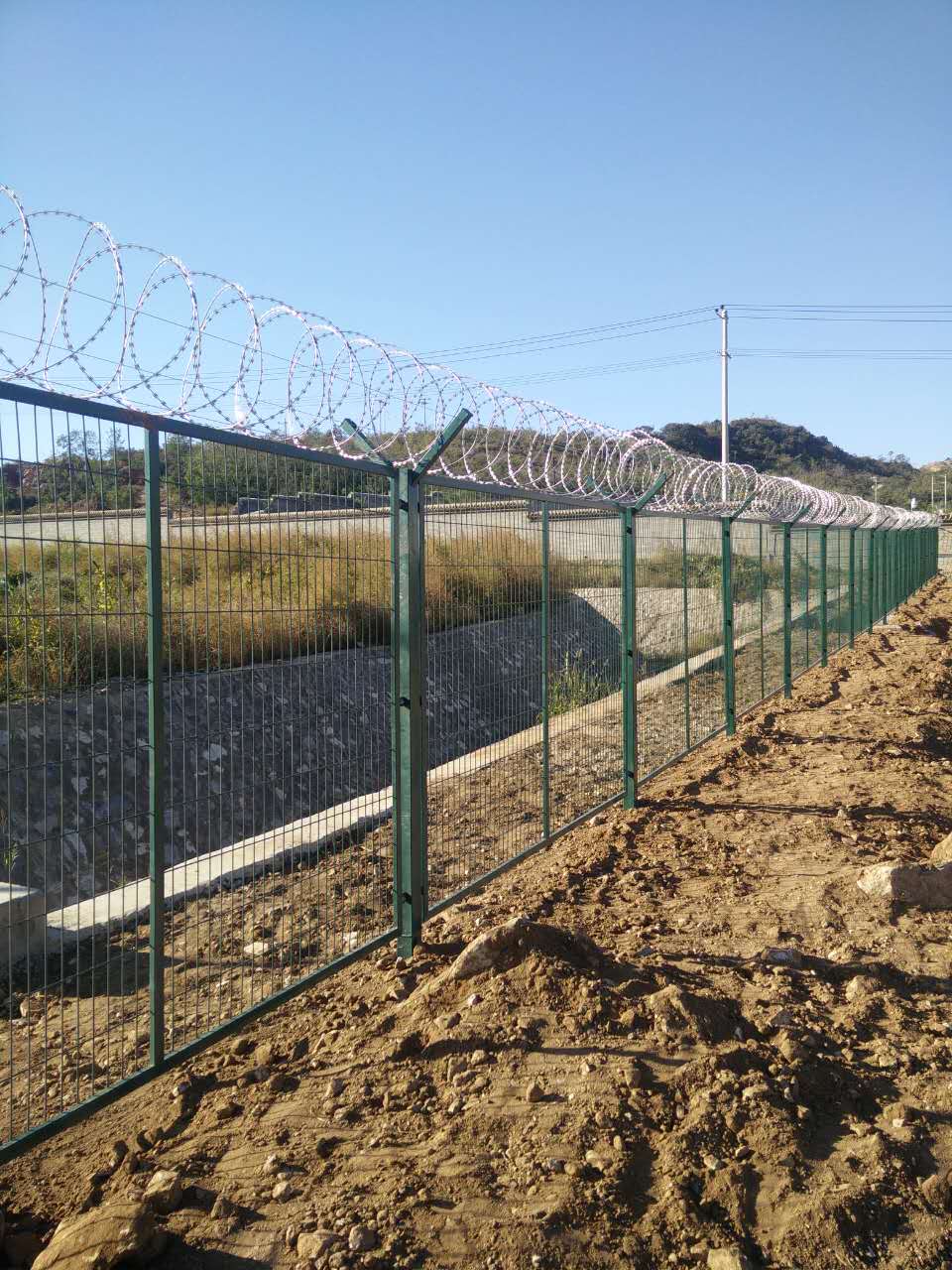 監(jiān)獄鋼網(wǎng)墻也叫監(jiān)獄隔離網(wǎng)主要由蛇腹式刀刺網(wǎng)、高碳鋼絲焊接網(wǎng)片Y型柱與安全防盜連接件組合而成。