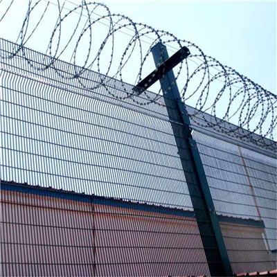 Y型架上邊架蛇腹型刀刺:由熱鍍鋅鋼板或不銹鋼薄板沖壓出尖利的刀片狀,高張力鍍鋅鋼絲或者不銹鋼絲做芯線組合而成的阻盡器材。刀刺直徑采取50-60厘米,刀型整潔、刀片鋒利、排列均勻致密、連接堅固、防腐才能強,可能達到防攀越、防拆卸最高保險等級。