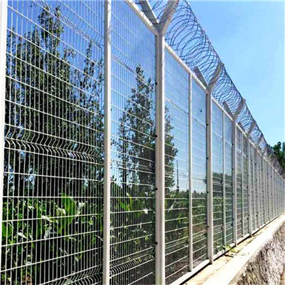 主體一般由網片、立柱和刀刺網三大部分組成。網片四周焊接邊框,以增加鋼網墻的防護強度,看守所鋼網墻的邊框和其它場地的邊框有所不同,網片中間可以加橫撐,以起到橫向支撐網子的作用,邊框左右兩側焊接連接網片,以便與兩側立柱連接。立柱焊接成Y字型,用以架設刀刺網,與網片完美結合,形成一道難以逾越的鋼網墻。