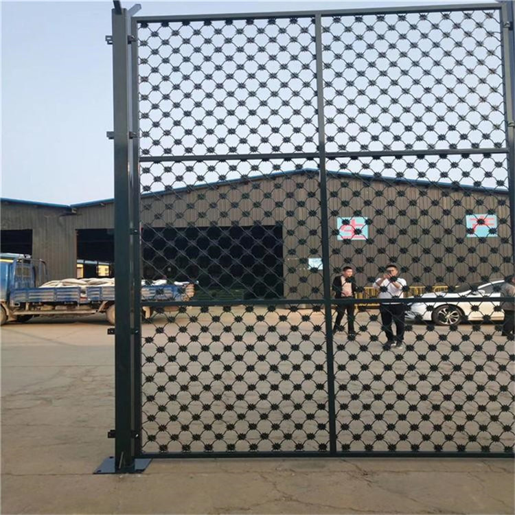 梅花刺網(wǎng)又稱監(jiān)獄護(hù)欄網(wǎng)或監(jiān)獄隔離柵,主要是采用高強(qiáng)度的刀片刺網(wǎng)與普通防護(hù)網(wǎng)的結(jié)合,由V型支架立拄,加強(qiáng)型焊接片網(wǎng),安全防盜連接件和刀片刺網(wǎng)組成.刀片刺網(wǎng)是一種新型防護(hù)網(wǎng),由銳利尖角鍍鋅鋼板或不銹鋼薄板做刀片,鋼絲做芯線組合而成的防護(hù)器材梅花刺網(wǎng)又稱高安全防護(hù)網(wǎng)、監(jiān)獄防護(hù)網(wǎng),是用氬弧焊將梅花形刺片焊接在美格網(wǎng)的節(jié)點(diǎn)上,形成刺形保護(hù),有效的防止了手握腳攀,為此該鋼網(wǎng)墻在監(jiān)獄或看守所使用。