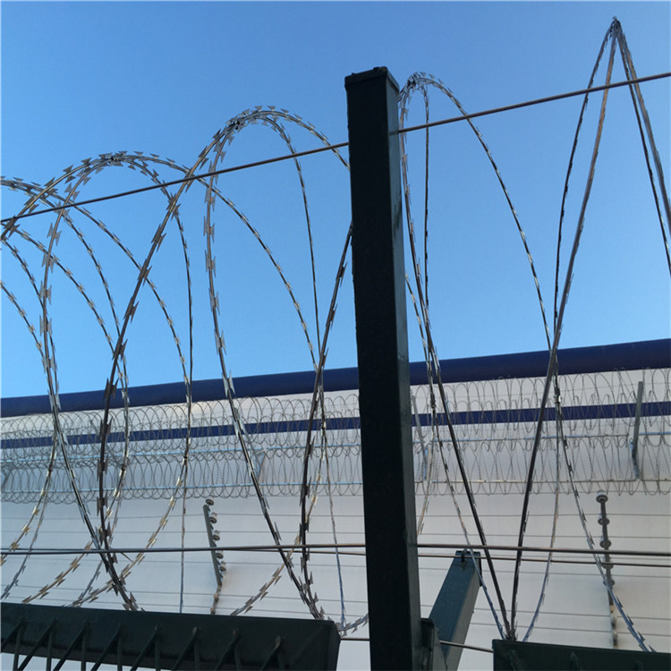 監(jiān)獄不銹鋼滾刺網(wǎng)一般安裝于圍墻的巡邏道上,起到防御效果。一般、等高戒備防御的場(chǎng)所需要按照需要安裝。監(jiān)獄不銹鋼滾刺網(wǎng)是重要的防御系統(tǒng),圍墻上加裝隔離網(wǎng)是為了提供的防御能力。根據(jù)規(guī)定:中度戒備圍墻一般應(yīng)高出地面5.5m,墻體應(yīng)達(dá)到 0.49m厚實(shí)心磚墻的安全防護(hù)要求,圍墻上部宜設(shè)置武裝巡邏道。監(jiān)獄不銹鋼滾刺網(wǎng)應(yīng)高出地面7mm,墻體應(yīng)達(dá)到0.3m厚鋼筋混凝土的安全防護(hù)要求,上部應(yīng)設(shè)置武裝巡邏道。