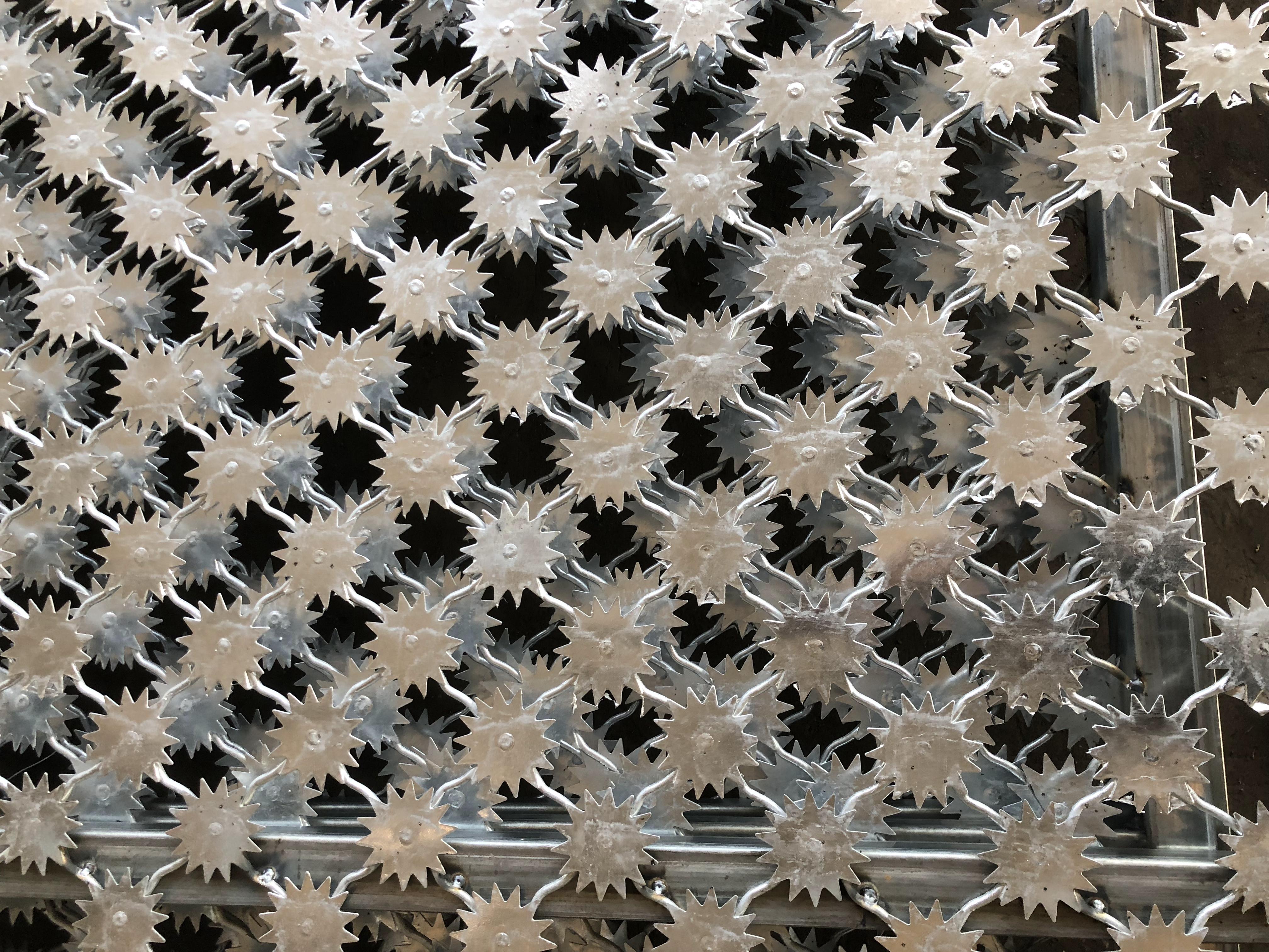 監獄太陽花防爬隔離網@梅花刺片隔離網@監獄太陽花刺片防護網也被稱為太陽花刺片監獄護欄網,它的立柱由Y形鍍鋅鋼管制成,鋼管的壁厚為150 * 150 * 8mm,網架的尺寸為60 * 60 * 2.5m。此外,監獄防攀爬護欄網的Y形柱還配備了不銹鋼刀片刺網,并對其表面進行了噴涂。常見的是深綠色噴涂和銀灰色噴涂,看起來高端,簡單而美麗,并且可以起到防腐防銹的作用,還可以起到裝飾環境的作用。