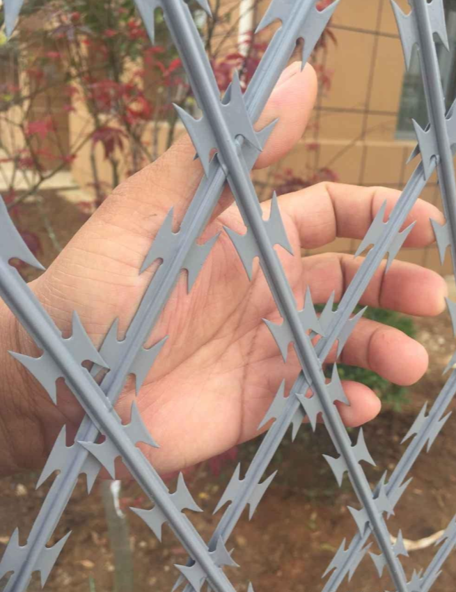 刀刺網刀刺的規格由很多下面說說常見的幾種,最常用的BT0-22,刀刺寬度15mm, 刀片長度22mm,刀刺問距36mm. BT0-18刀刺寬度15mm,刀片長度18mm, 刀刺間距35mm。CBT-65,刀片寬度21mm, 刀片長度65mm,刀刺問距100mm。 刀寬,刀長,刀刺問距允許誤差范圍士1mm,芯線直徑2.5mm,允許誤差士0.1mm,刀片厚度0.5mpm,允許誤差士0,05mm