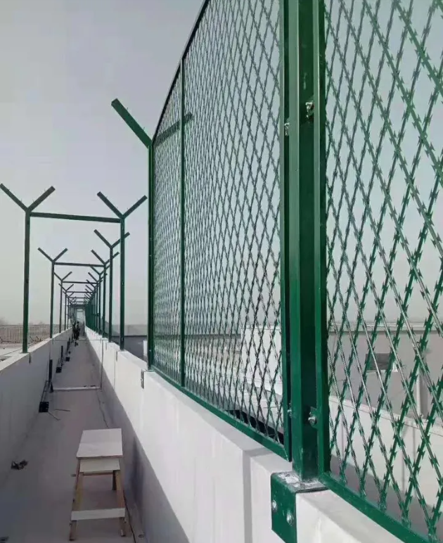 監獄焊接刀刺防護網是一種新型防護網,技術要求較高,隔離防護效果要強、不能翻越。通常采用銳利尖角鍍鋅鋼板或不銹鋼薄板做刀片,鋼絲做芯線組合而成的防護器材該產品具有 陽、防翻越等效果,材質堅硬,高強度,高張力,造型設計獨特,不宜觸摸,因而能達到好的防護隔離效果。還具有施工簡便,經濟實用等優點看守所防護網