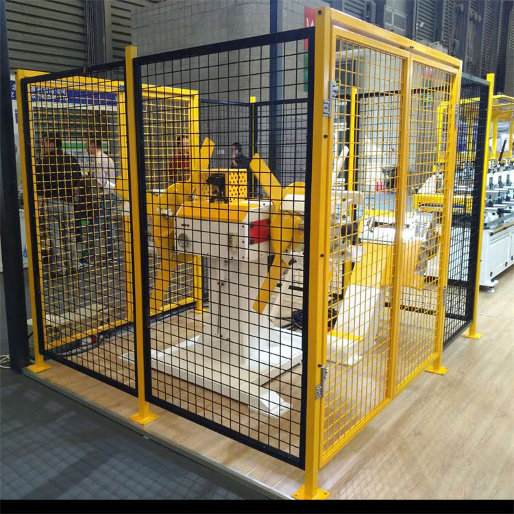 車間護欄主要功能是劃分生產區、通道、物料區等不同功能區域。它起到引導人流和車流、阻擋無關人員隨意進入特定區域的作用。設計上更注重通透性和靈活性,材質選擇范圍廣,如方管、鐵絲網、鋁合金等。雖然也有基本的高度和穩定性要求,但整體防護等級遠低于機器人護欄,一般不需要復雜的安全聯動系統。