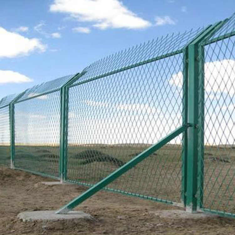 柵欄網面多選用菱形或矩形網格設計,網格尺寸經過專門計算,在實現視野通透的同時,能有效阻擋人員穿越。部分設計會在網面中段設置橫向加強構件,形成連續阻隔帶。支撐系統采用深埋地下的穩固立柱,并通過混凝土基礎固定,確保結構整體穩定。