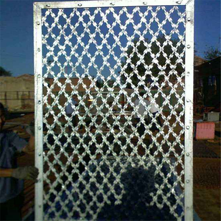 監(jiān)獄焊接隔離網通常采用鋼絲直徑為,網孔采用監(jiān)獄鋼網墻、監(jiān)獄隔離網組成構造:首先把網片焊接在鐵管框架上,框架是方管或者圓管焊接成的框架構造,在框架上焊接用于個立柱銜接的銜接板,用防盜螺栓與立柱銜接。為了保證網片的防拆卸性能,網片銜接方式采用特制防盜緊扣件,有效避免人為的毀壞性拆卸。