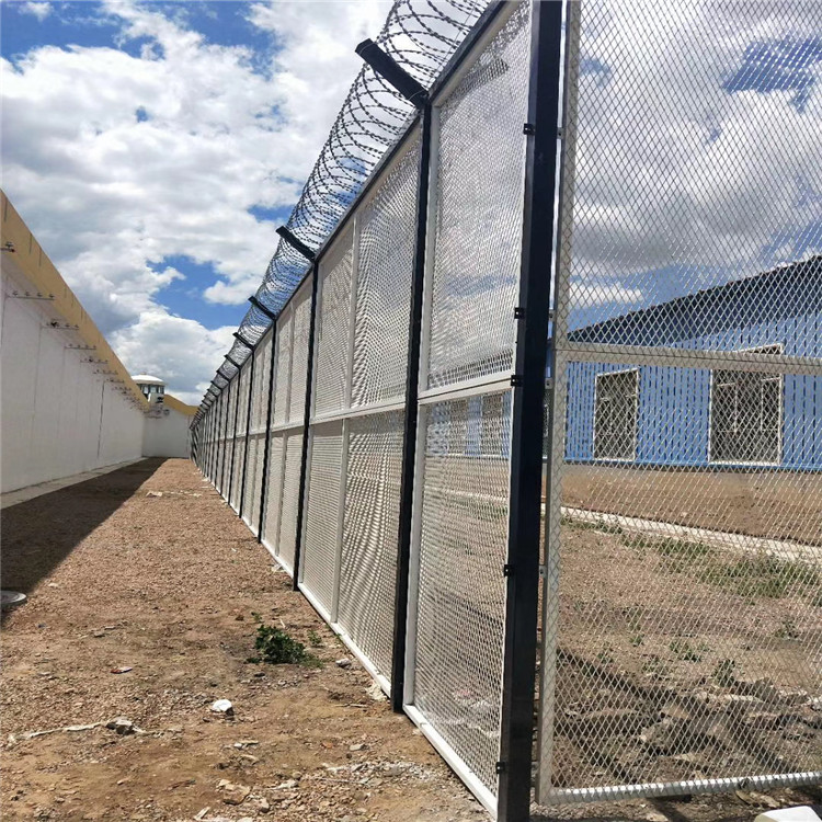 機場鋼板網圍界 是由整片厚度4mm的鋼板經機床切削和拉伸而成, 機場鋼板網圍界孔為豎菱形,長對角線不大于10cm,短對角線4—5cm.一般采用鍍鋅防腐.由于鋼板網孔邊緣較為鋒利,可有效阻止人為攀爬. 機場鋼板網圍界的規格尺寸和安裝方式與鋼筋網圍界相似。