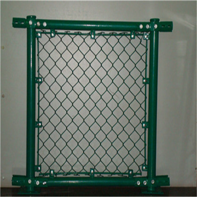 2、安裝之前先要看一下,60立柱的連接邊耳,是否有變形情況(在運輸過程中,難免擠壓),如果有,可用鉗子修正一下。埋第一根立柱60圓管,用水泥澆筑,然后將上、下兩橫桿48圓管與立柱用螺絲固定。再埋第二根立柱,與上下橫桿連接。第一套學校護欄網的框架就安裝完成。就可以安裝下一套的上下橫桿48圓管。安裝第三根立柱60圓管。依次類推。注:框架、立柱要做到橫平豎直。