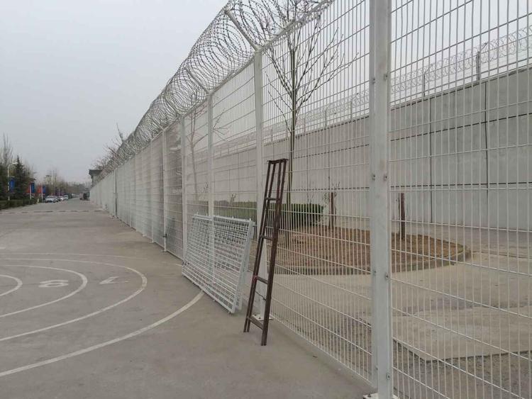 7、監獄防爬圍墻網繃網時,四個角也要留有適量的余量,以防角上張力過大而破網;