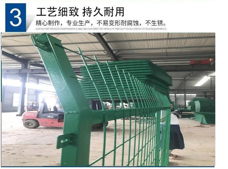 3.電焊網(wǎng)隔離柵網(wǎng)片表面鍍鋅量為275g/㎡,浸塑層的材料為PVC,塑層厚度不小于0.2mm;
