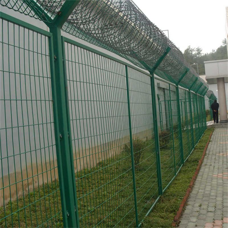 監(jiān)獄方孔隔離網(wǎng)材均為熱鍍鋅后采用高質(zhì)量的聚酯粉末靜電噴涂,采用國(guó)際流行的RAL顏色。