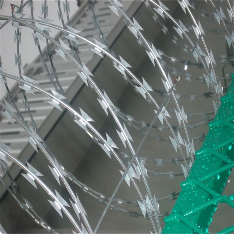 為了適應不同的使用環境,蛇腹型刀刺網在選材和工藝上也展現出多樣性。常見的芯線材料有鍍鋅鋼絲和不銹鋼絲,刀片材料則包括熱鍍鋅鋼板和不銹鋼薄板。在沿海或工業污染區等腐蝕性較強的環境中,還可以選用防腐性能更優的316L不銹鋼材質,或在表面增加浸塑、噴涂等復合防腐處理,以延長產品的使用年限。這種靈活性使得蛇腹型刀刺網除了應用于高警戒場所,也能用于工廠圍墻、小區邊界等民用安防領域,成為守護安全的通用選擇。