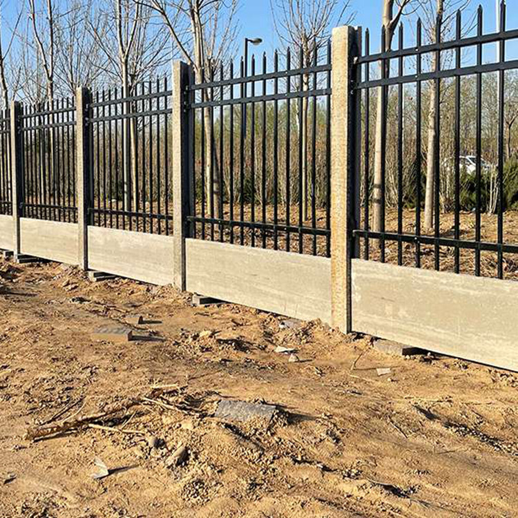 鋅鋼圍欄安裝前需做好充分準備和基礎處理。施工前應檢查所有工具是否齊全,核對配件清單確保安裝所需材料完備。安裝立柱的部位需對基層進行處理,基層混凝土不得有酥松現象,凹凸不平處需剔除或修補平整,嚴重蜂窩麻面處應用高強度混凝土修補,待達到一定強度后方可進行安裝。在直線距離全段拉上下限二道平行線作為安裝調整基準,確保護欄安裝后上下端的平直度。